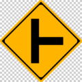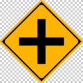 • 前方に十形の道路交差点があることを示す、注意を促すための警戒標識です。