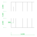 フリー素材 / 2D-CAD / 建築設計素材 / 部品 / 寸法 / DXF / autocad DWG / オートキャド自転車置き場の簡易図面の書き方・参考図 / 平置き自転車1台のスペース:W:500 mm L:2000 mm通路幅:W:1,500 mm