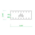 フリー素材 / 2D-CAD / 建築設計素材 / 部品 / 寸法 / DXF / autocad DWG / オートキャド自転車置き場の書き方・参考図 / 平置き1台のスペース:W:600 mm L:2000 mmライン幅:100 mm