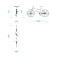 フリー素材 / 2D-CAD / 建築設計素材 / 部品 / 乗り物 / 自転車 / 標準表示 / アウトライン表示 / 寸法 / DXF / autocad DWG 全長×全幅×全高オブジェクトサイズ 1900×438×975mm