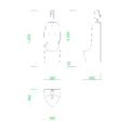 フリー素材 / 2D-CAD / 建築設計素材 / 部品 / 給排水衛生設備 /トイレ / 便器 / 標準表示 / アウトライン表示 / 寸法 / DXF / autocad DWGオブジェクトサイズ W:380mm H:1210mm D:100mm※床隙間:100mm