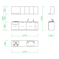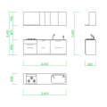 フリー素材 / 2D-CAD / 建築設計素材 / 部品 / 給湯設備 / スリムキッチン/ 台所 / 寸法 / DXF / autocad DWGW:2550mm H:2400mm D:600mm