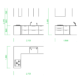 フリー素材 / 2D-CAD / 建築設計素材 / 部品 / 給湯設備 / キッチン / 台所 / 寸法 / DXF / autocad DWGW:2100x2100mm H:2400mm D:650mm