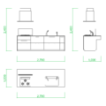 フリー素材 / 2D-CAD / 建築設計素材 / 部品 / 給湯設備 / アイランドキッチン / 台所 / 油はねガード / 寸法 / DXF / autocad DWGW:2550mm H:2400mm D:1000mm