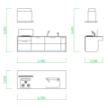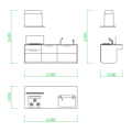 フリー素材 / 2D-CAD / 建築設計素材 / 部品 / 給湯設備 / 壁付キッチン / 台所 / 油はねガード / 寸法 / DXF / autocad DWGW:2550mm H:2400mm D:1000mm
