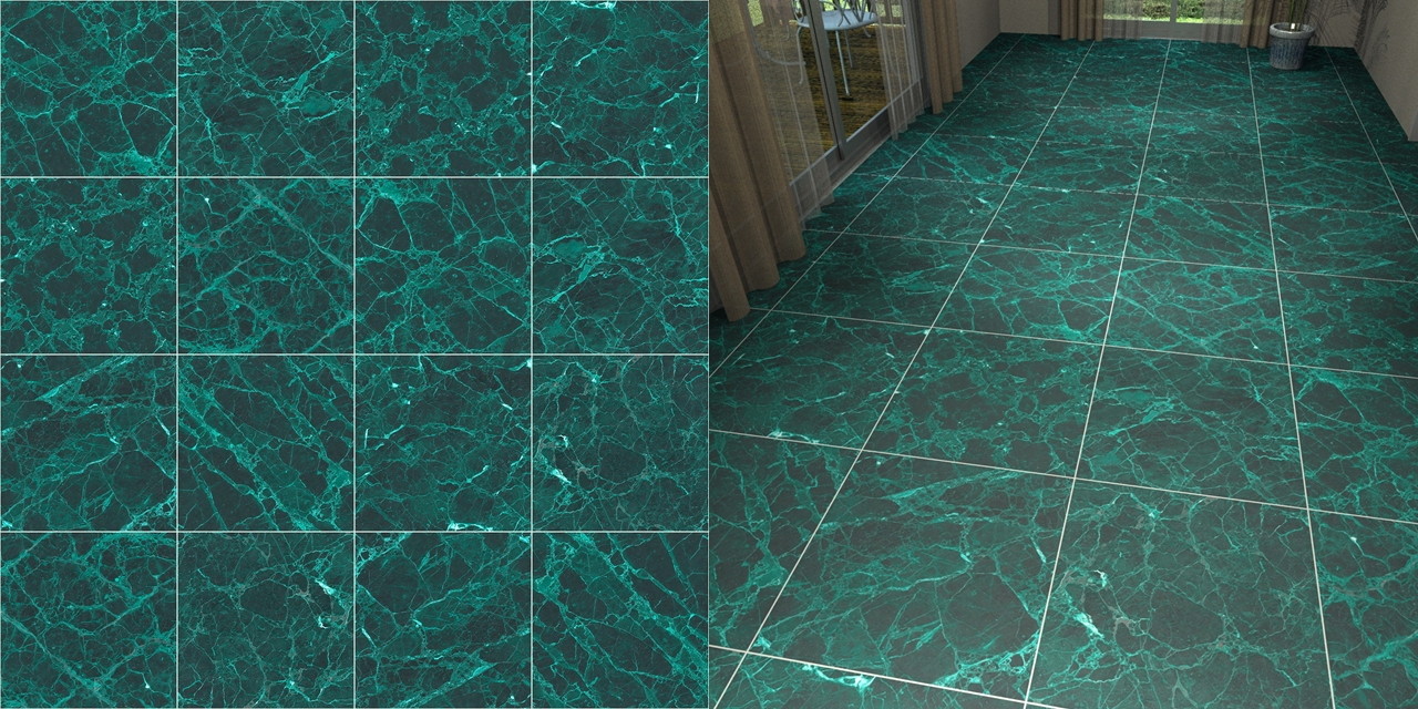 フリー素材 / テクスチャー / 床材 / 石タイル / 大理石 / 緑色 / 目地4mm / 2,400×2,400mm 16枚@600mm角(596mm角+目地4mm) / 2,400×2,400pixels